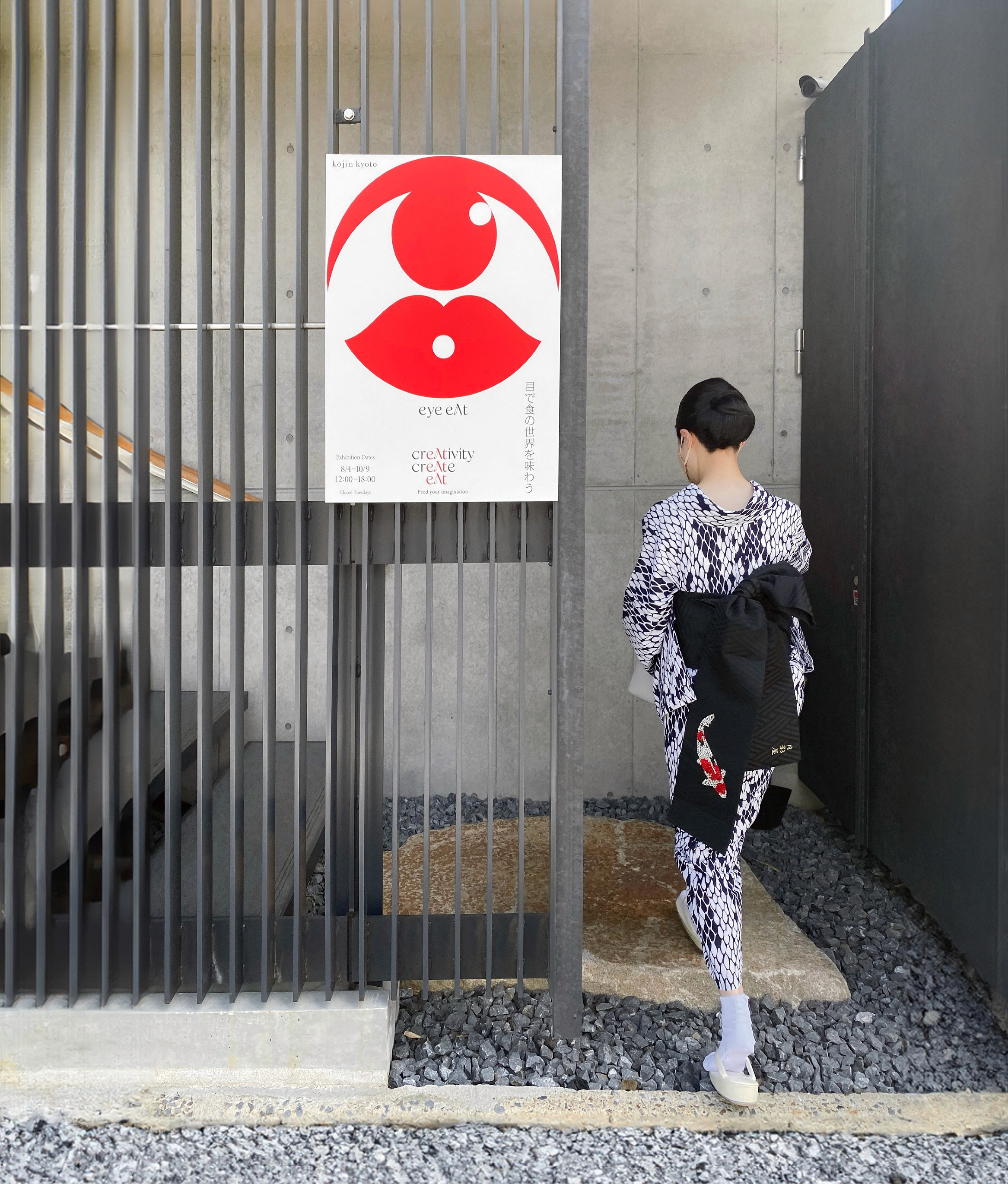 The signature "Eyeeat" logo translates the core theme into a minimalist icon, integrating the motifs of the eye and mouth through a rigorous geometric construction based on circular forms.